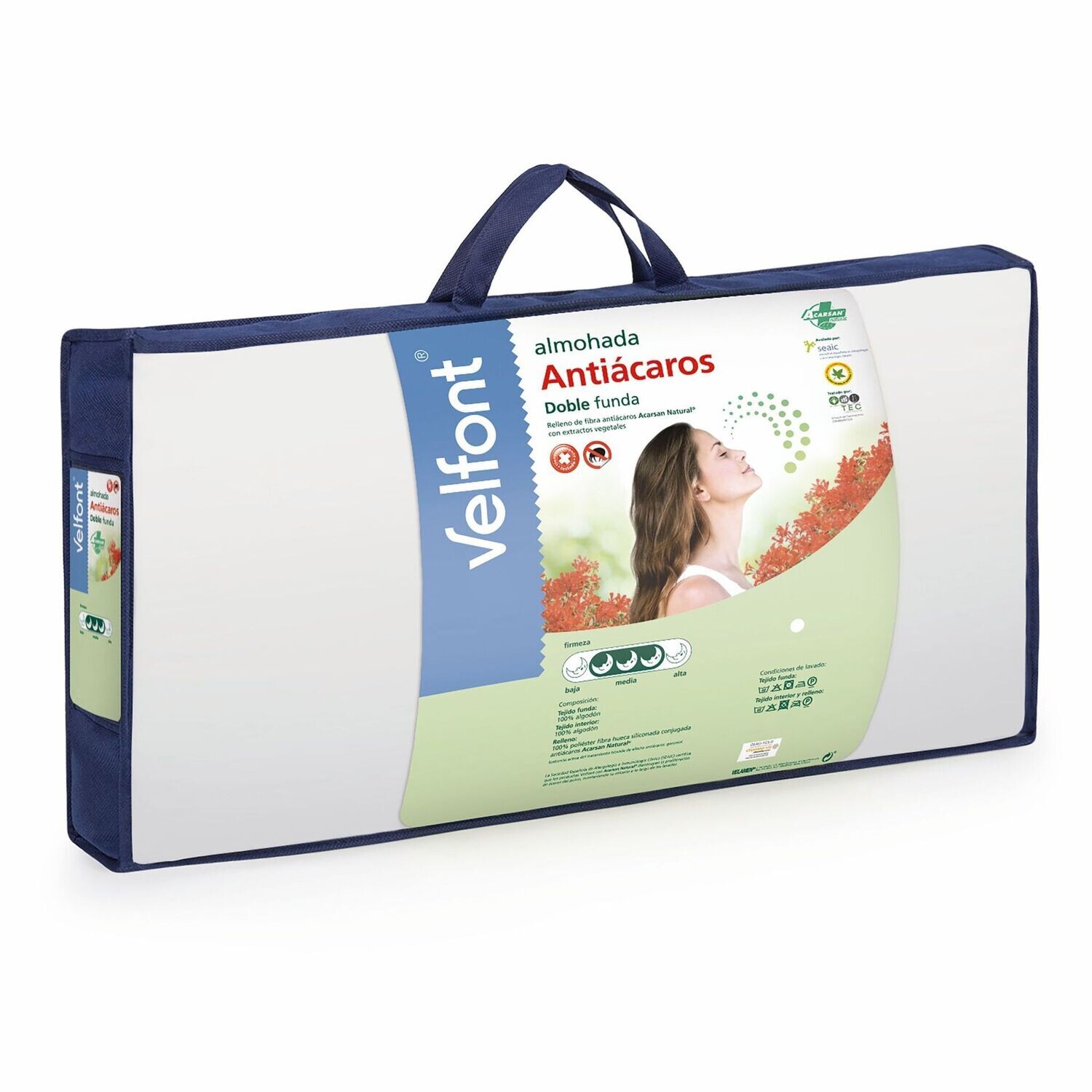 Almohada especialmente desarrollada para personas alérgicas a los ácaros. Interior y exterior 100% algodón.